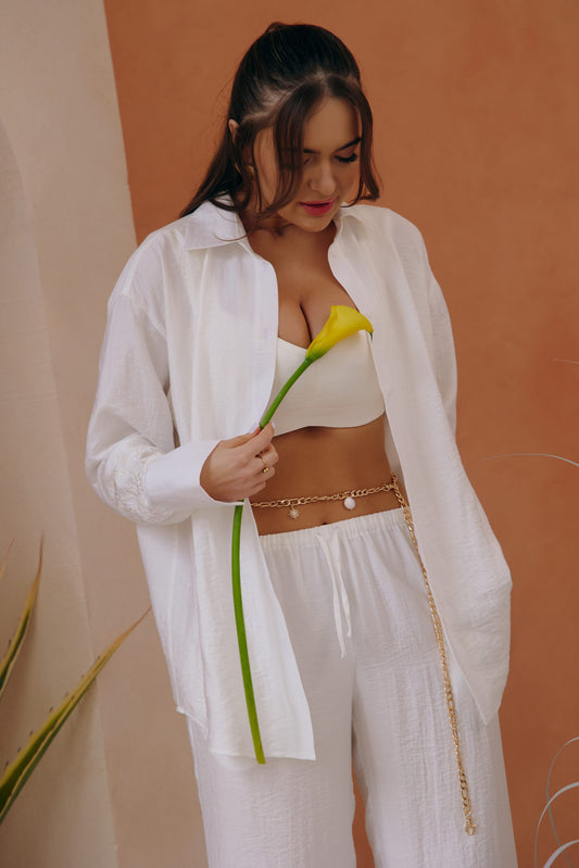 • Лляні штани на резинці з вишивкою тон в тон