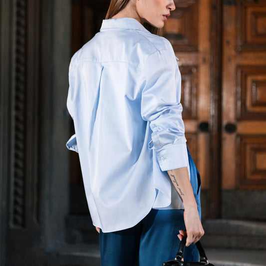 Сатинова сорочка з подовженим коміром коричнева