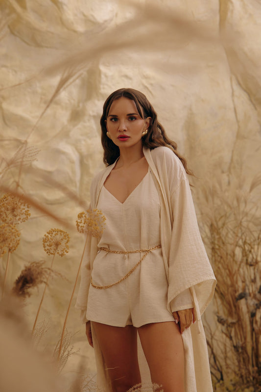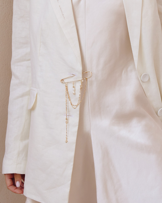 Лляний оверсайз жакет з вишивкою "Art of being a woman" на лацкані