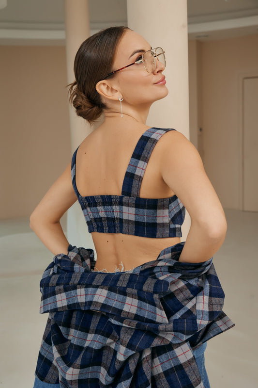 Топ у клітинку темно синього кольору
