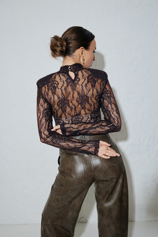 Жакет оздоблений корсетом з мережива шоколад