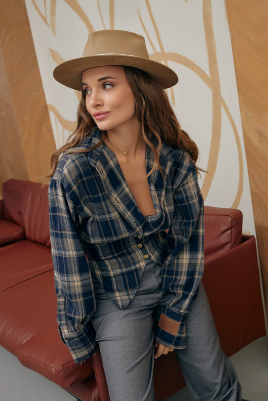 Сорочка у клітинку New Era of Me синій/беж
