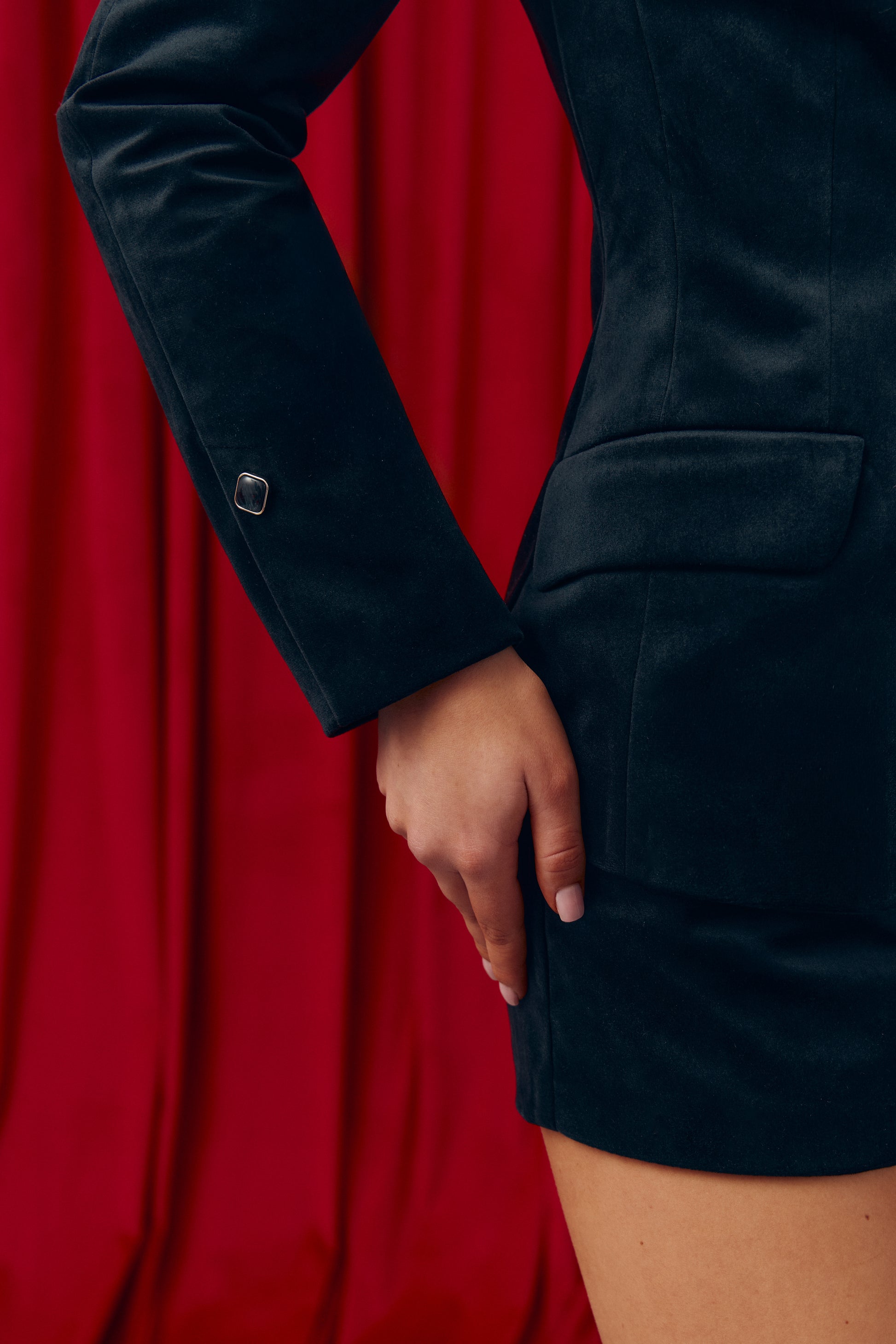 Приталений піджак і спідниця-шорти з м’якого велюру формують образ, у якому ти готова до будь-якої події… навіть якщо це просто четвер.