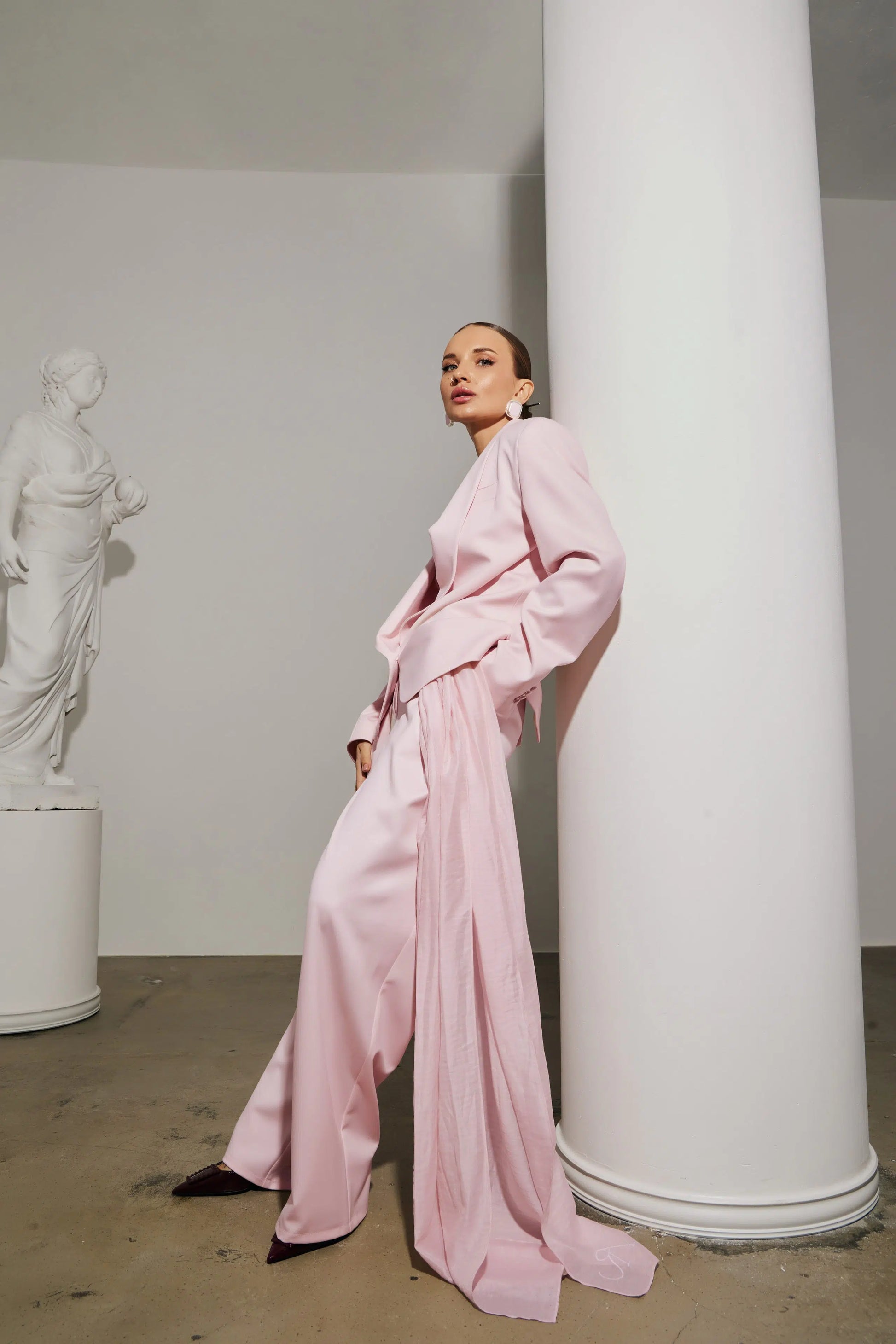 Виконані зі спадаючої, але формостійкої тканини, яка красиво рухається та зберігає бездоганний вигляд протягом усього дня.