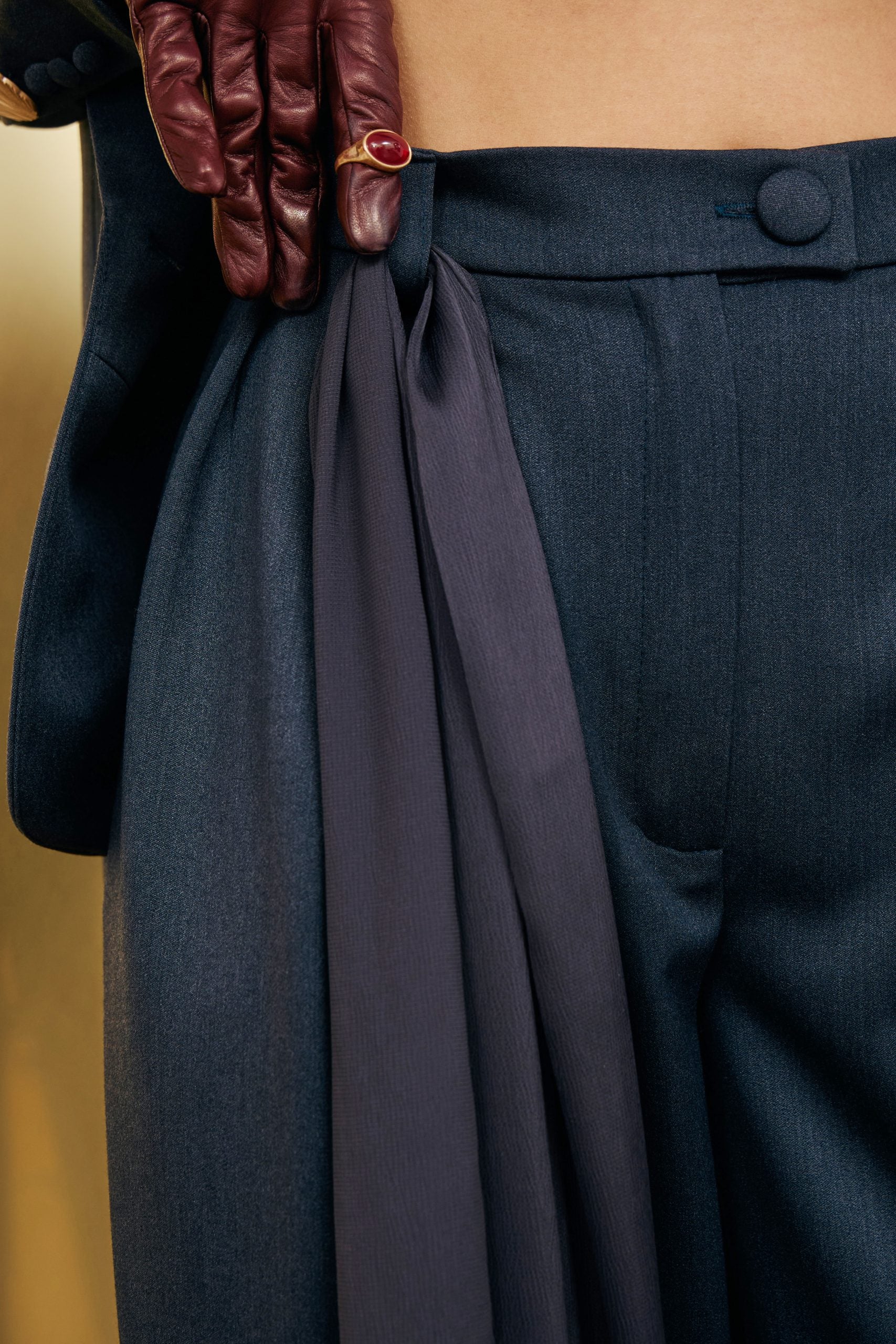 Штани прямого крою з елегантними складками, що чудово доповнюють жакет.