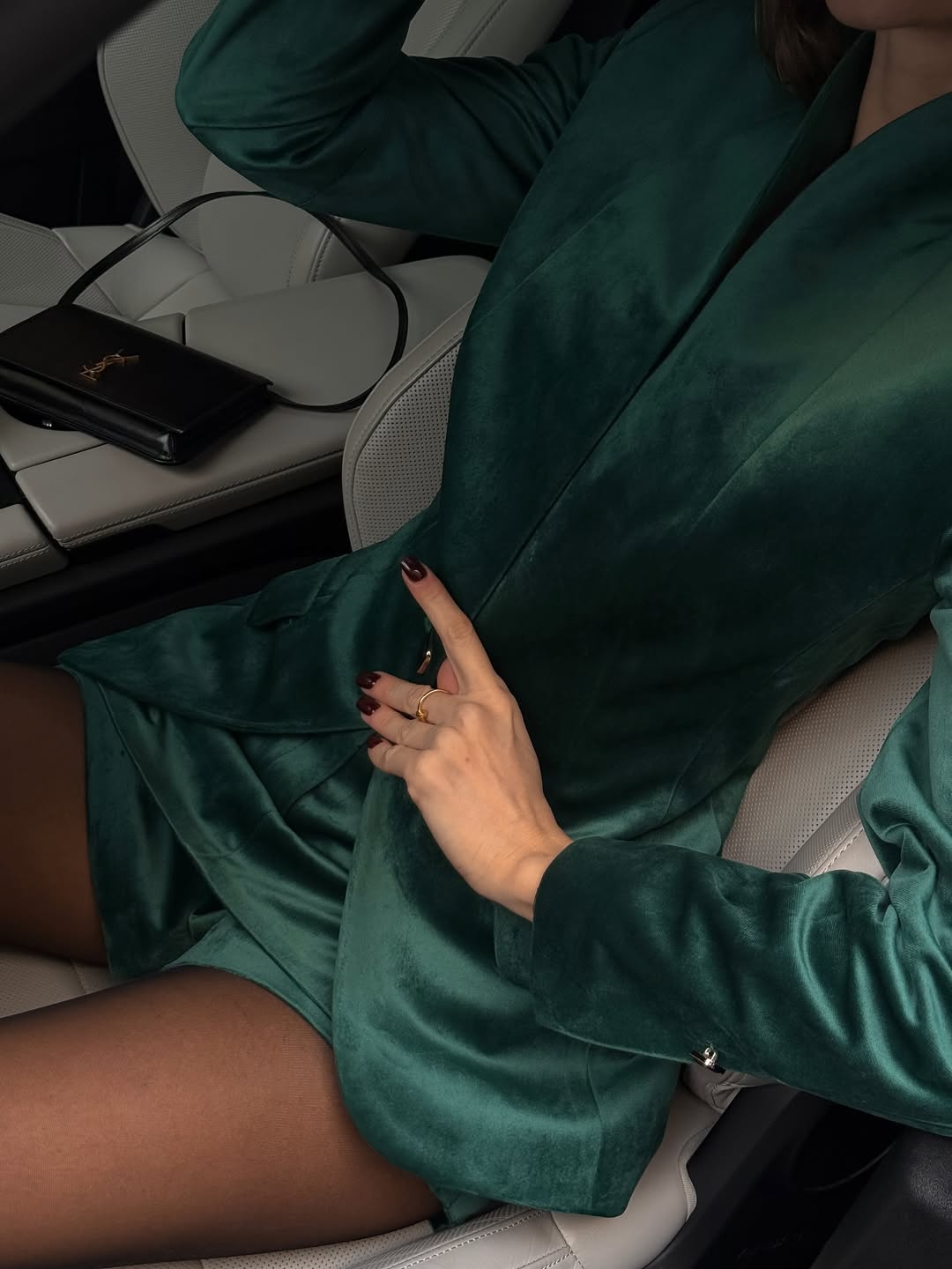 Сет із м’якого велюру, що ніжно блищить у русі та створює глибокий, благородний ефект.
